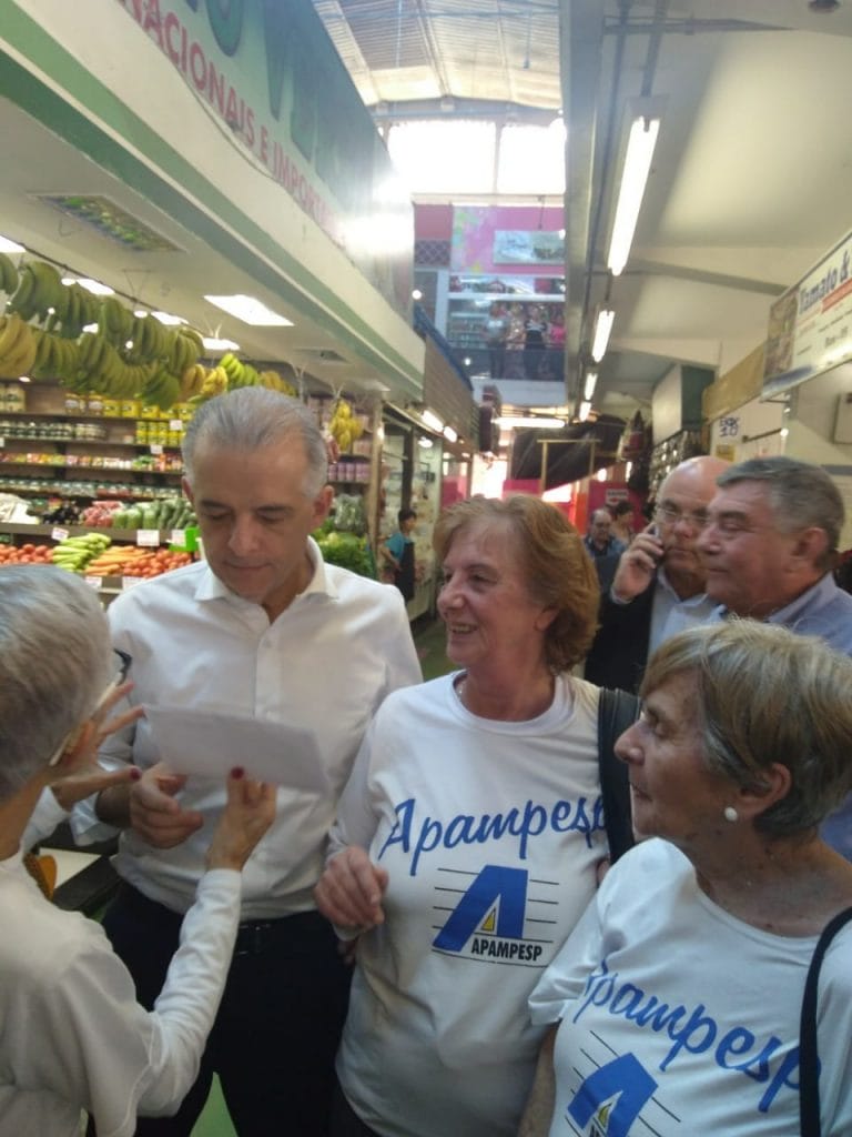 A Regional da Apampesp em Mogi das Cruzes, dirigida pela professora Maria Aparecida Romeiro Leal, aproveitou a passagem do Governador Márcio França pela cidade, em campanha eleitoral, no dia 30 de agosto, para entregar ofício e cobrar do Chefe do Executivo no Estado o pagamento de precatórios e a correção com urgência da Escala de Vencimentos, alterada pela Lei Complementar nº 1317/2018, que penalizou os cargos em extinção (Assistente de Diretor, Coordenador Pedagógico e Orientador Educacional). Esses profissionais receberam apenas 3,5% dos 7% a que teriam direito pelo aumento concedido em fevereiro de 2018. Em relação aos precatórios, o Governador declarou já haver liberado para pagamento 14 milhões dos 21 milhões da dívida de SP, ou seja 2/3 do montante. A nossa Entidade também reivindicou a contribuição paritária de 2% para o Iamspe.