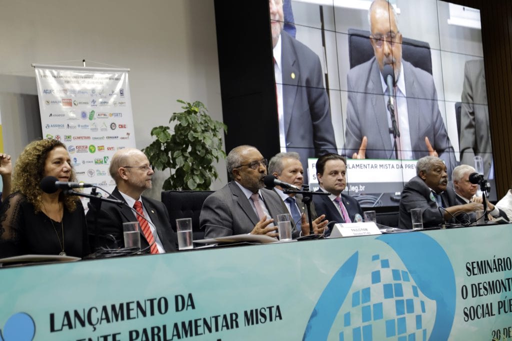 O senador Paulo Paim (PT-RS), um dos coordenadores da Frente, abriu os trabalhos convocando os presentes a lutarem pelos direitos conquistados pelos brasileiros, e ressaltou que o projeto, da maneira que foi apresentado, não é de interesse da população, e sim do mercado financeiro, pontuando a questão da capitalização. “O povo brasileiro não quer essa reforma porque o que está sendo proposto para a capitalização é o fim da previdência”, afirmou.
