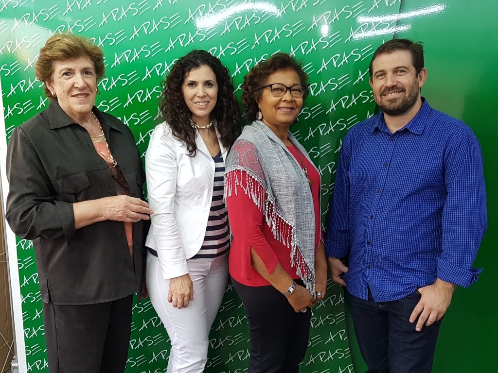A maratona de Encontros da Diretoria Executiva da Apampesp com representantes de outras Entidades continuou nesta terça-feira, dia 28 de maio, durante uma reunião realizada na sede da Apase (Sindicato dos Supervisores de Ensino do Magistério Oficial no Estado de São Paulo). As professoras Walneide Romano, presidente da Apampesp, Lucia Cotomacci, 1ª vice-presidente, e o assessor da Presidência, Robson Lopes, foram recebidos pela presidente da Apase, professora Rosângela Aparecida Ferini Vargas Chede.
