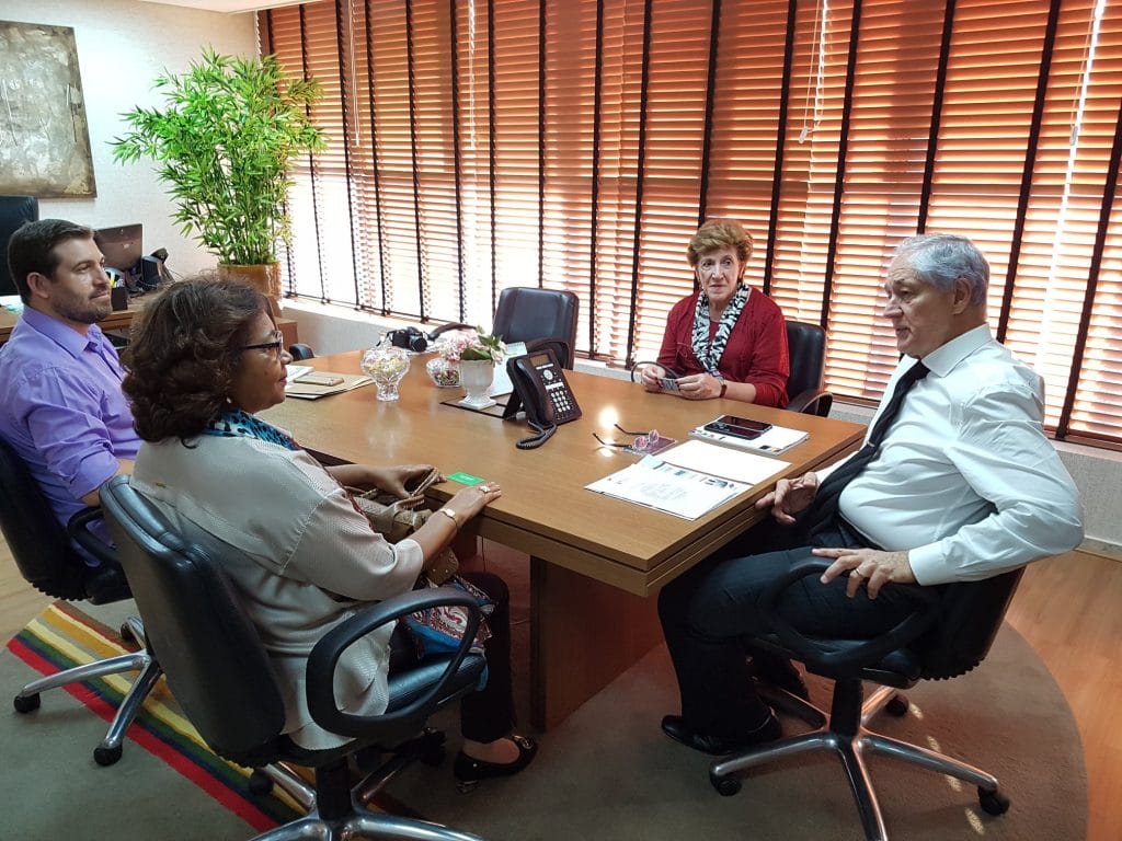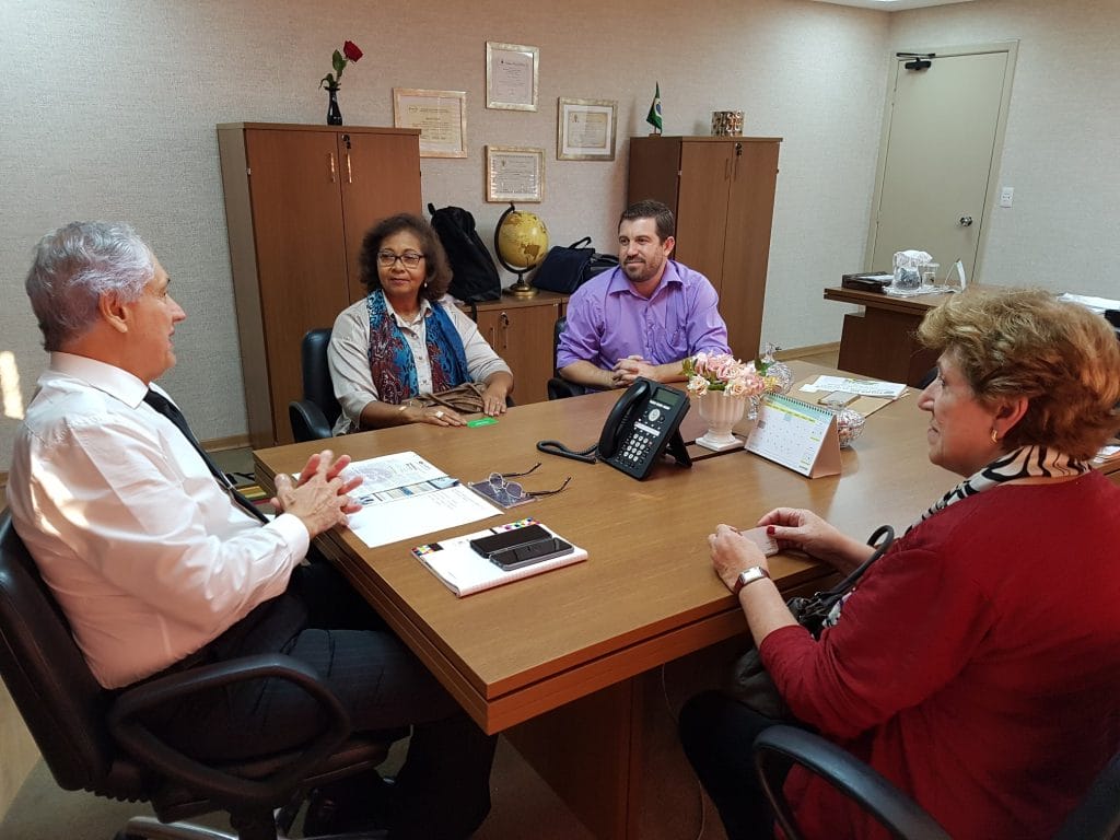 Dentro da estratégia da Apampesp de fortalecimento da luta em parceria com outras Entidades, as professoras Walneide Romano, presidente da Apampesp, e Lucia Cotomacci, 1ª vice-presidente, e o assessor da Presidência, Robson Lopes, foram recebidos na tarde desta terça-feira, dia 21 de maio, pelo presidente da Associação dos Funcionários Públicos do Estado de São Paulo, Dr. Álvaro Gradim, na sede da Afpesp, no Centro de São Paulo.