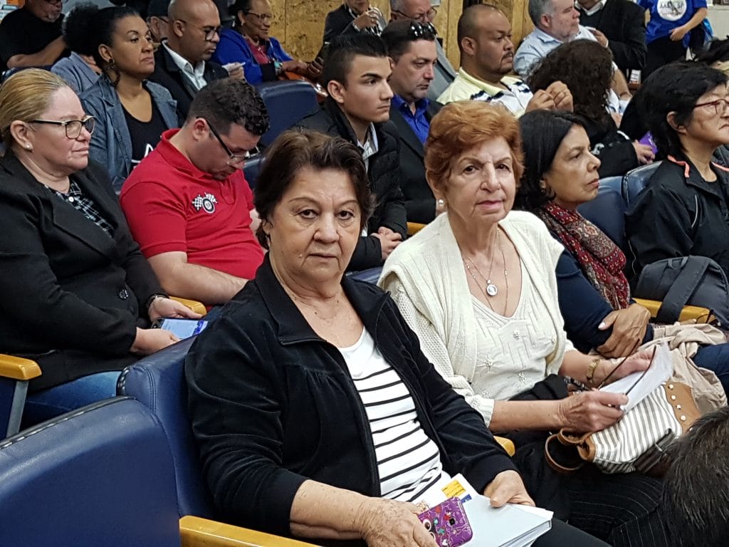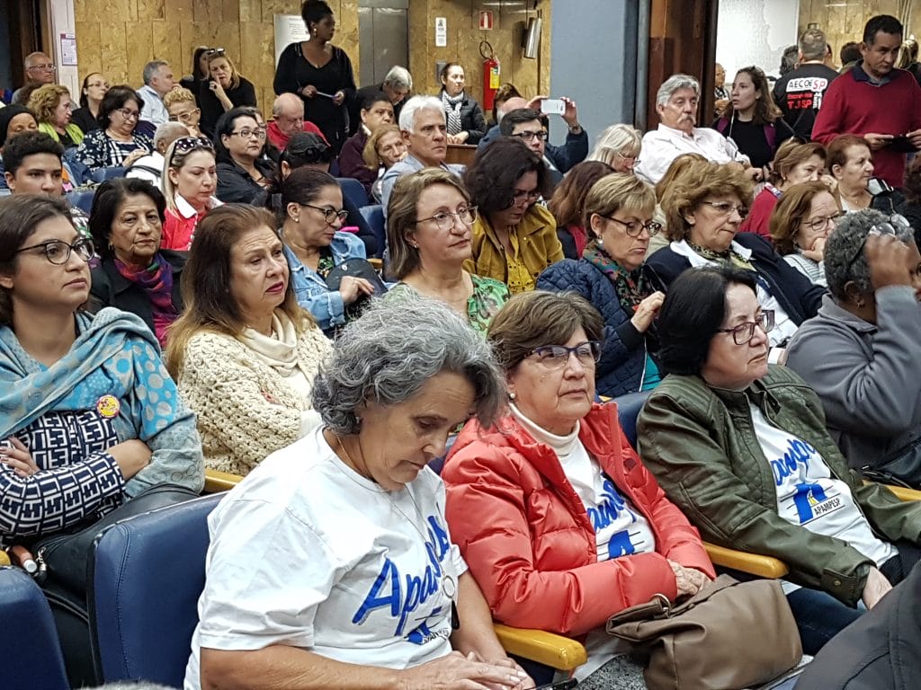 Professoras da Sede Central da Apampesp, da Baixada Santista e da Regional de Bauru, incluindo a representante da Apampesp na CMM do Iamspe, professora Maria Antonia Vedovato, participaram na manhã desta quinta-feira, dia 29 de agosto, do lançamento da Frente Parlamentar em Defesa do Iamspe para a legislatura 2019/2022, realizado no auditório Franco Mantoro da Assembleia Legislativa do Estado de São Paulo.