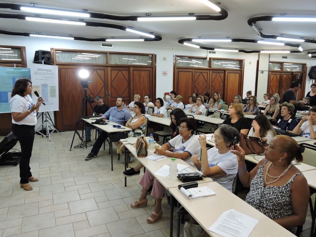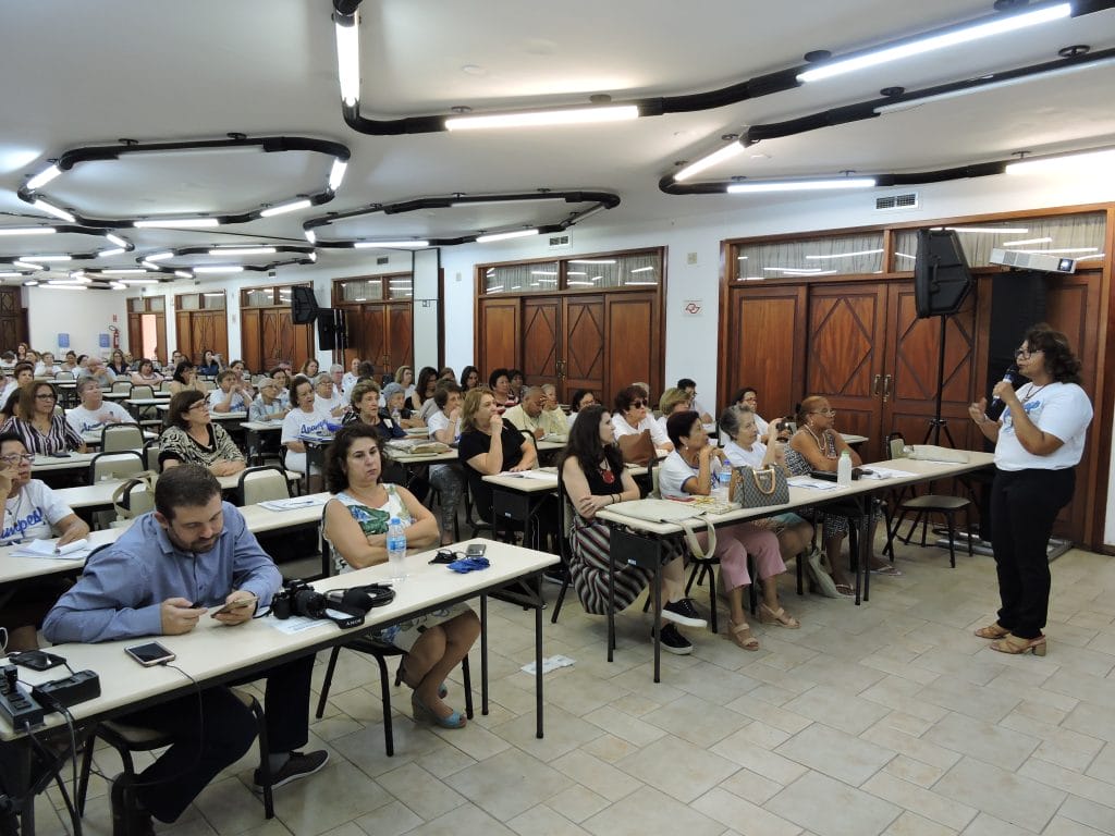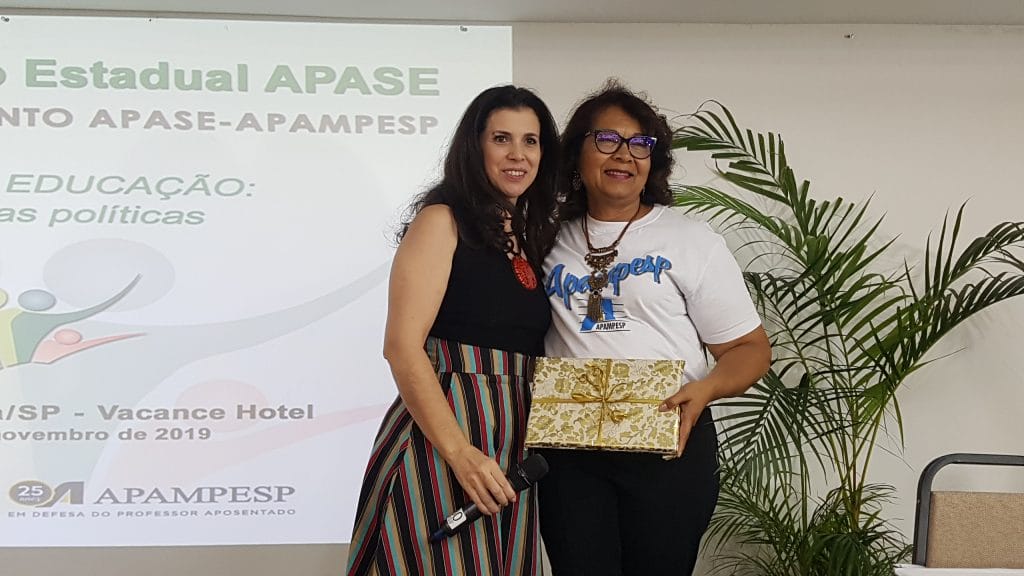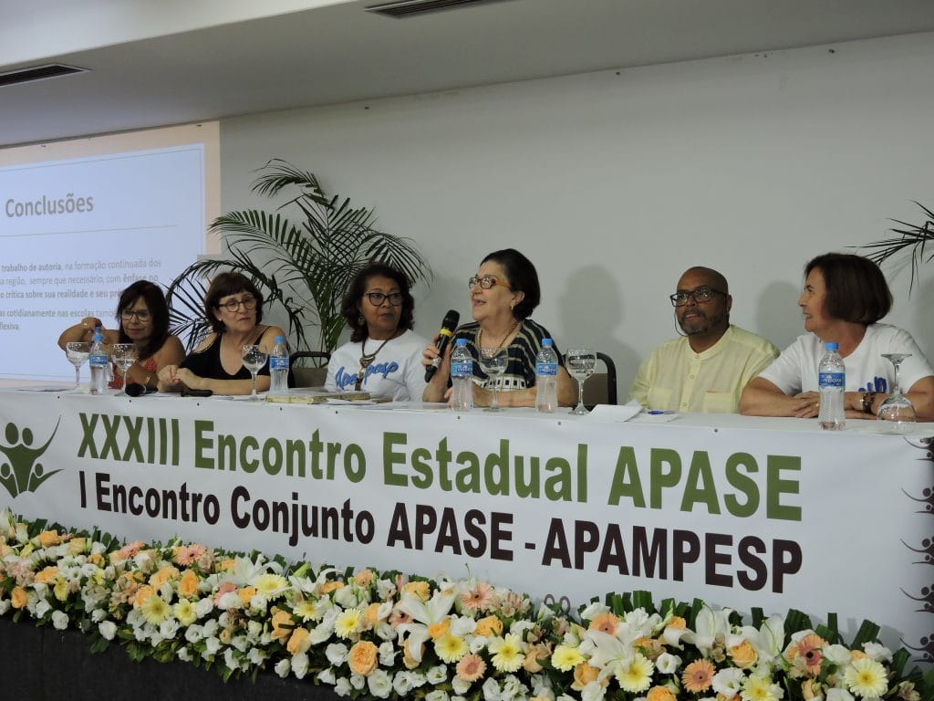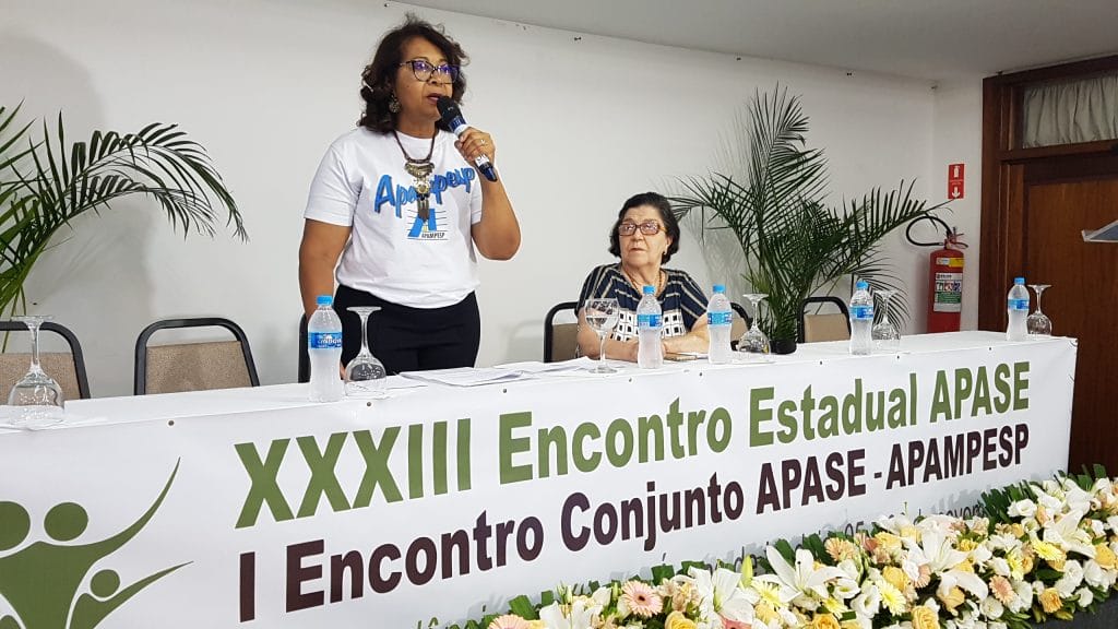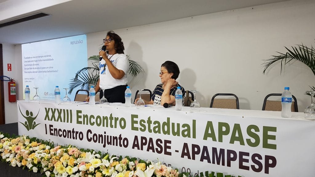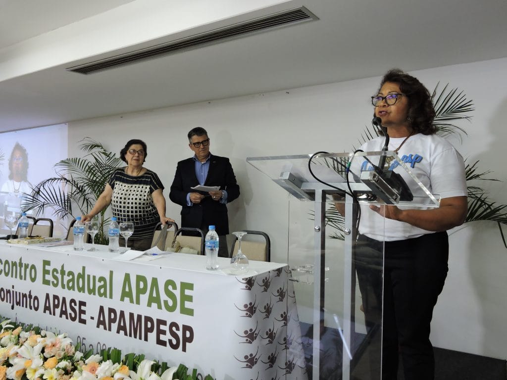 O XXXIII Encontro Estadual Apase e I Encontro Conjunto Apase-Apampesp, que acontece até o próximo dia 8, no Vacance Hotel, em Águas de Lindóia, contou com um momento importante e elucidativo na tarde desta quarta-feira, dia 6 de novembro. Durante a mesa de Comunicações, a presidente da Apampesp, professora Walneide Romano, apresentou uma palestra com o tema “Impactos das políticas educacionais do Estado de São Paulo para os professores aposentados”.