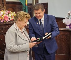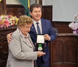 A professora Danila Zamboni, uma das fundadoras da Apampesp e figura histórica na defesa dos direitos dos professores aposentados, foi condecorada pela Câmara Municipal de Bauru nesta última quinta-feira, dia 24 de julho, com a entrega da Medalha “Sebastião Paiva”, uma das mais importantes honrarias da cidade. A homenagem foi proposta pelo vereador Márcio Teixeira e aprovada por unanimidade pelo plenário no dia 23 de junho deste ano, resultando no Decreto Legislativo nº 2.370/2025.