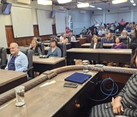 Após receber a medalha, a professora Danila Zamboni ocupou a tribuna e emocionou o público ao rememorar as bandeiras que pautaram sua vida profissional, destacando especialmente a defesa dos aposentados do magistério. Ela ressaltou que a homenagem a tocava profundamente, por reconhecer um percurso marcado pelo compromisso com a educação pública e pela atuação ao lado da Apampesp desde sua criação.