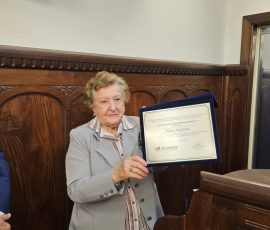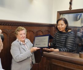A presidente da Apampesp, professora Walneide Romano, também fez uso da palavra durante a solenidade. Ela destacou a relevância da homenagem na história de Danila Zamboni e ressaltou como sua atuação na construção da Entidade inspirou gerações de educadores a se engajarem na defesa dos aposentados. Em seguida, a professora Walneide entregou à professora Danila uma placa de Associada Fundadora Emérita, reconhecendo oficialmente sua dedicação e contribuição à Associação.