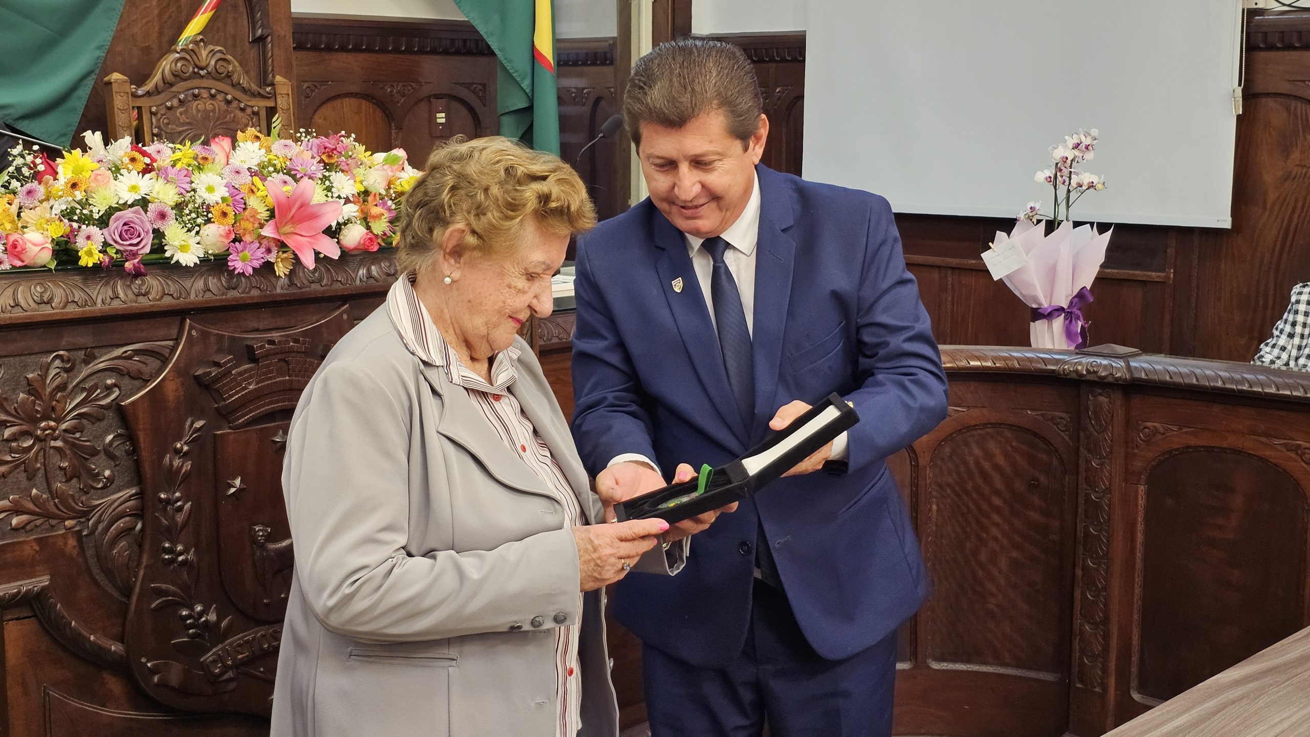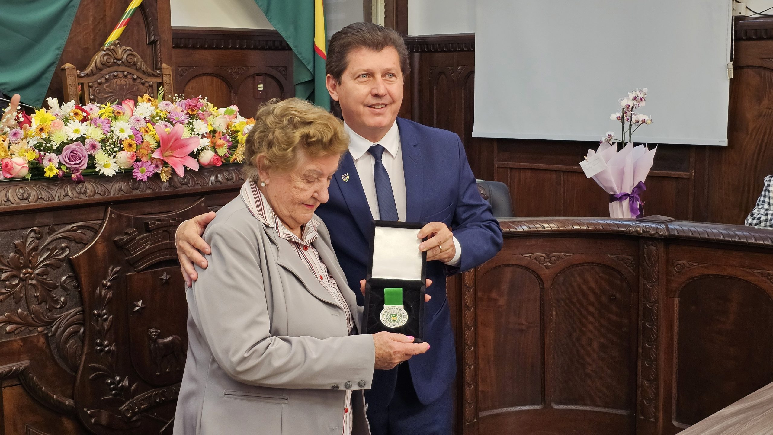 A professora Danila Zamboni, uma das fundadoras da Apampesp e figura histórica na defesa dos direitos dos professores aposentados, foi condecorada pela Câmara Municipal de Bauru nesta última quinta-feira, dia 24 de julho, com a entrega da Medalha “Sebastião Paiva”, uma das mais importantes honrarias da cidade. A homenagem foi proposta pelo vereador Márcio Teixeira e aprovada por unanimidade pelo plenário no dia 23 de junho deste ano, resultando no Decreto Legislativo nº 2.370/2025.