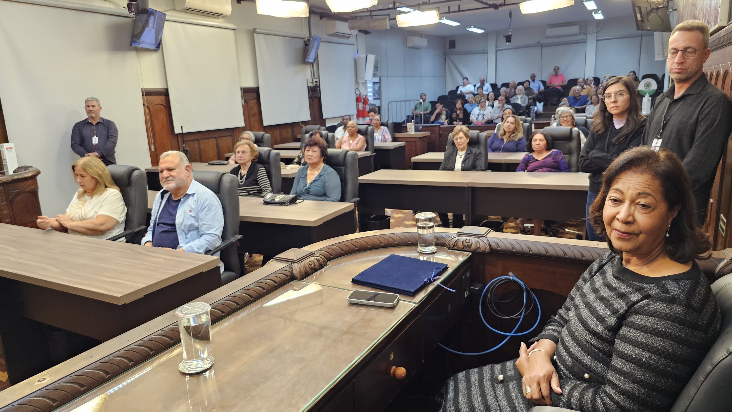 O ato ocorreu no plenário “Benedito Moreira Pinto”, sob a presidência do vereador Cabo Helinho, de parlamentares, do proponente da honraria, de familiares, amigos e de dirigentes e conselheiros da Apampesp de diversas regionais, que acompanharam com orgulho o reconhecimento público à trajetória da professora Danila.
