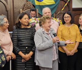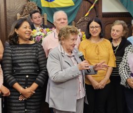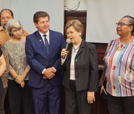 Em seguida, diversas lideranças da Apampesp — da Regional de Bauru e de outras localidades — utilizaram a tribuna para agradecer a homenagem e reforçar a importância do reconhecimento dirigido tanto à Entidade quanto à professora Danila Zamboni. As falas convergiram na valorização do trabalho docente, nos desafios enfrentados pelos professores aposentados, frequentemente negligenciados pelo poder público, e na resistência que marca a trajetória da categoria.