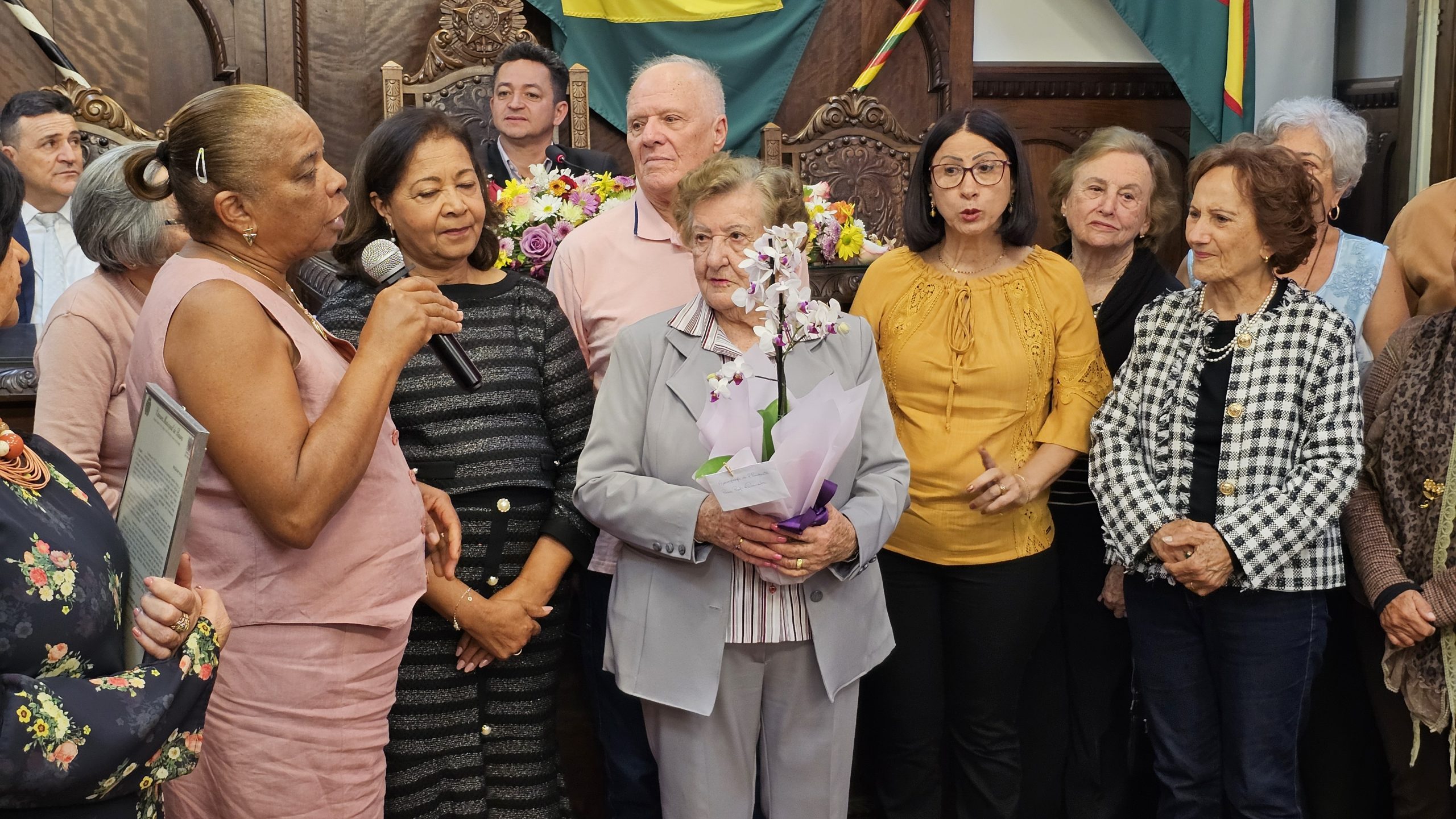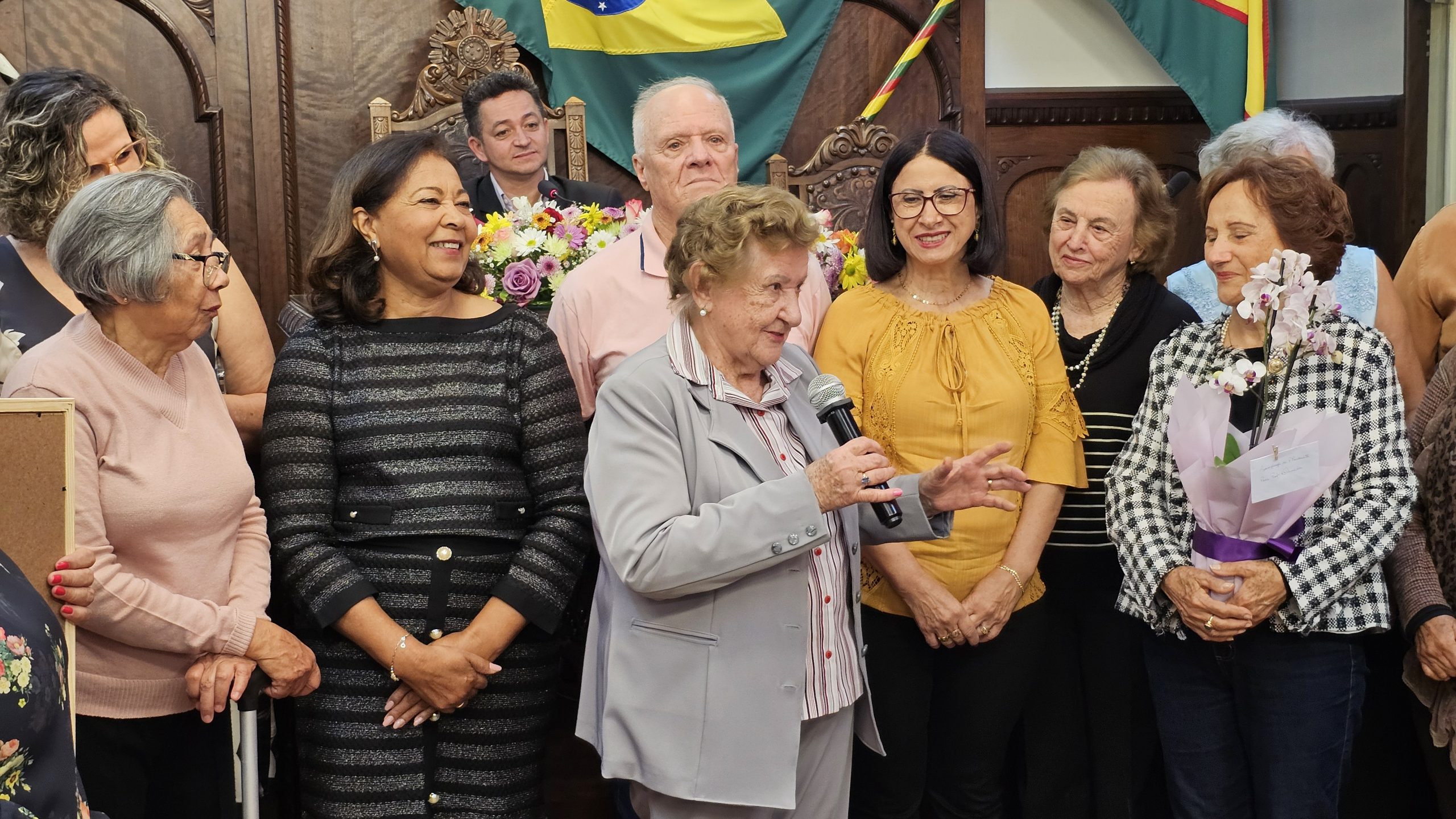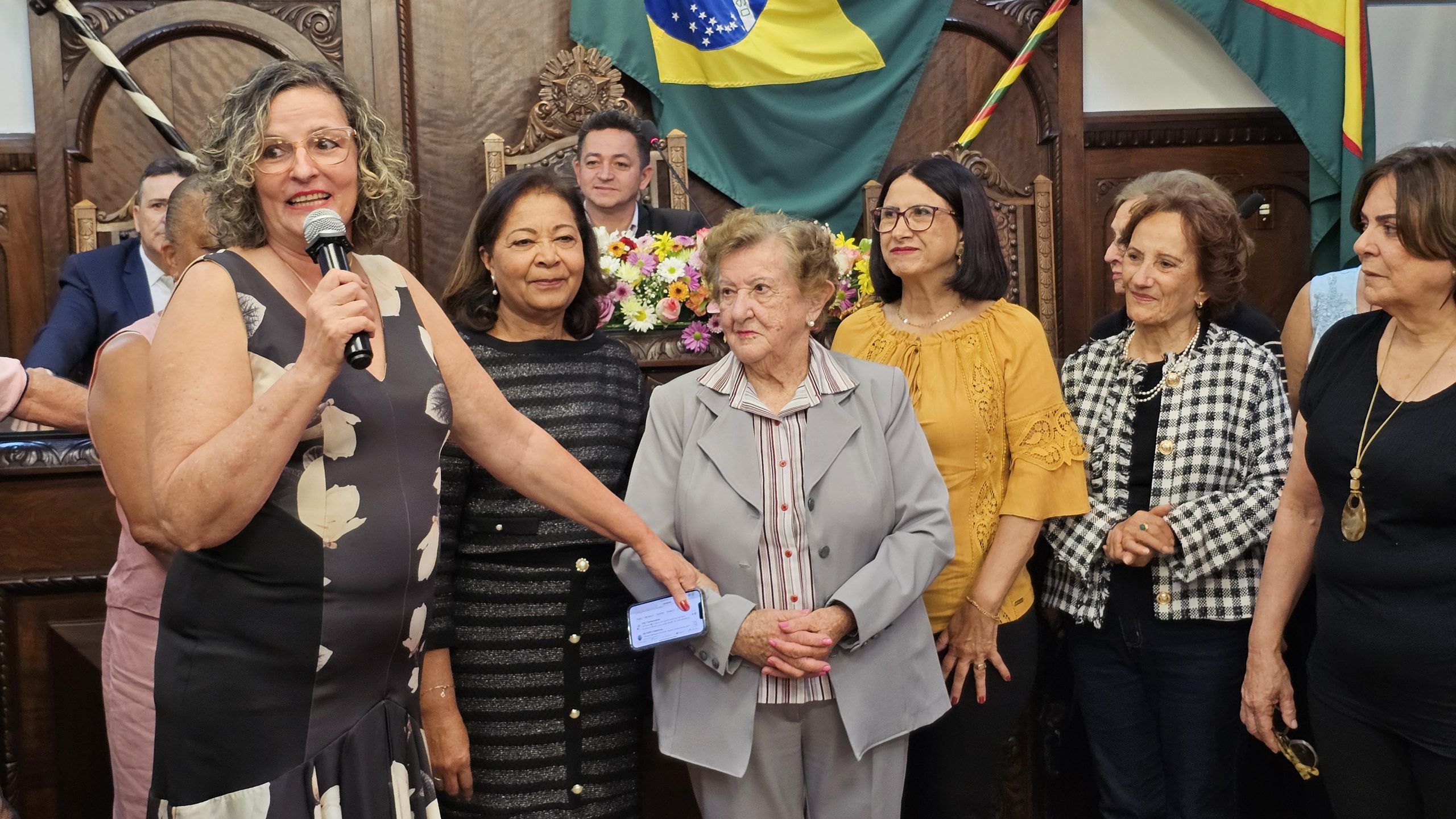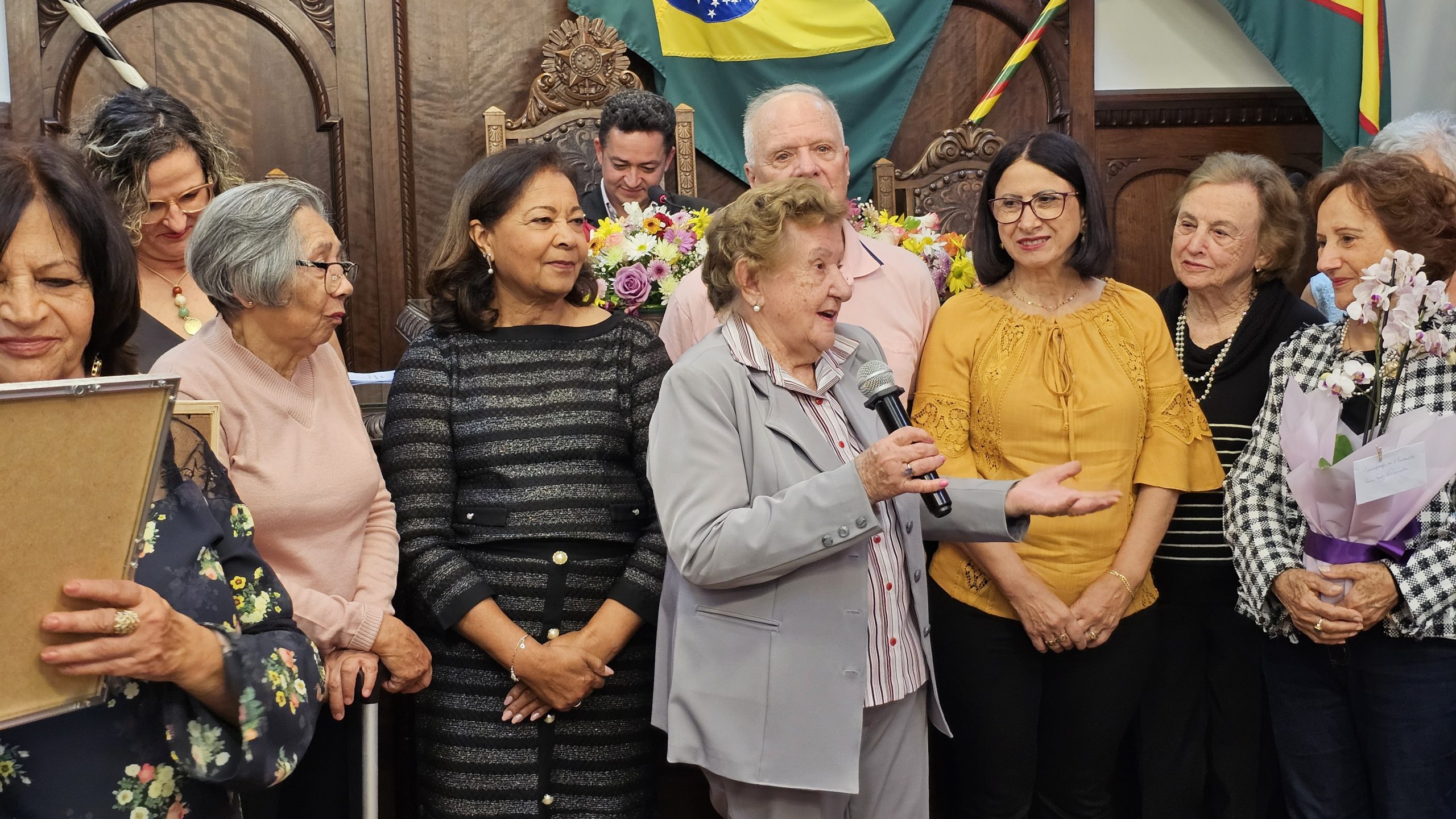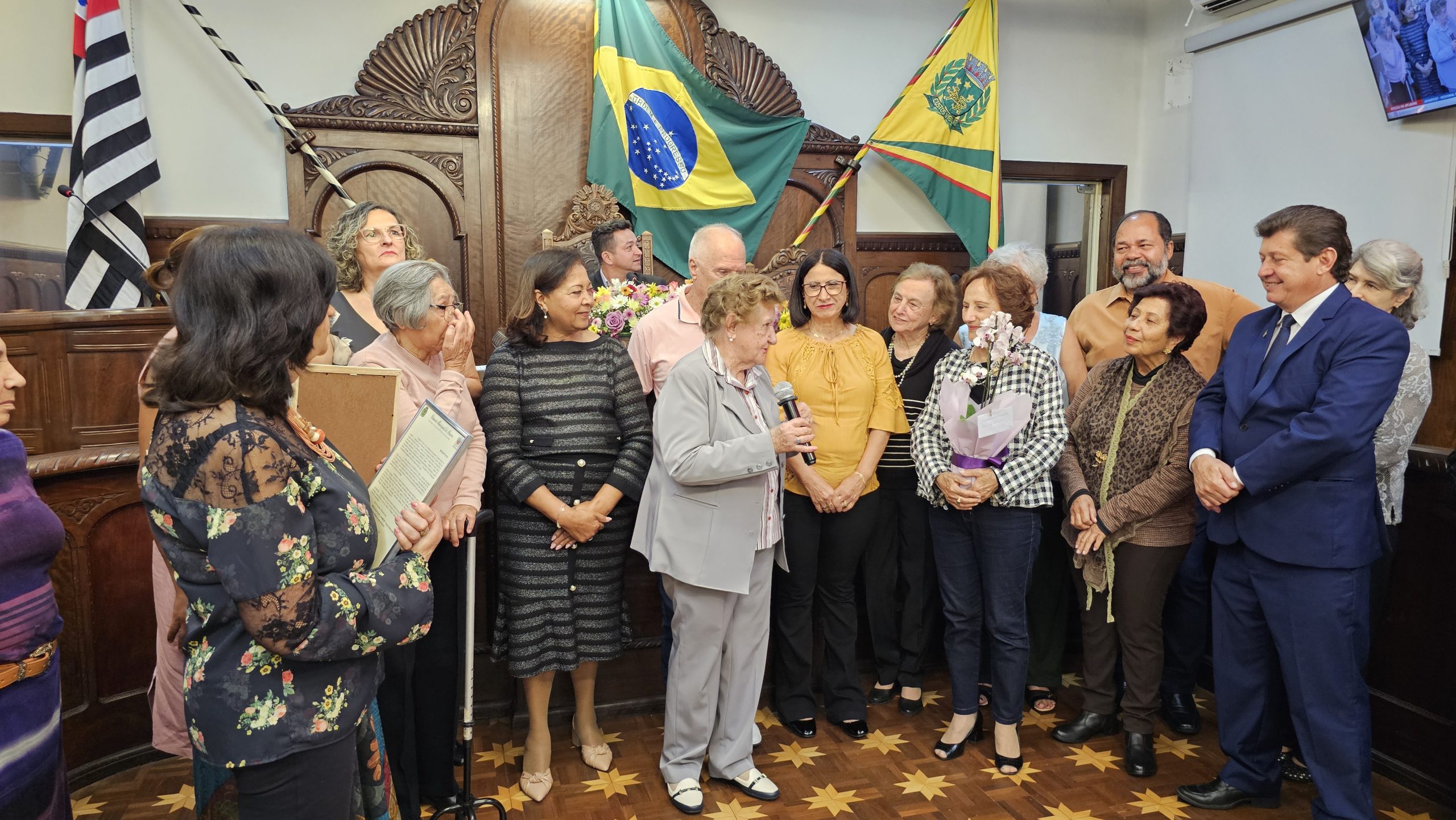 Em seguida, diversas lideranças da Apampesp — da Regional de Bauru e de outras localidades — utilizaram a tribuna para agradecer a homenagem e reforçar a importância do reconhecimento dirigido tanto à Entidade quanto à professora Danila Zamboni. As falas convergiram na valorização do trabalho docente, nos desafios enfrentados pelos professores aposentados, frequentemente negligenciados pelo poder público, e na resistência que marca a trajetória da categoria.