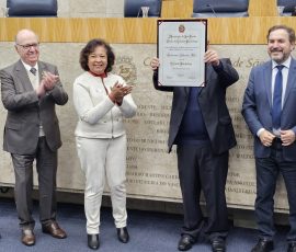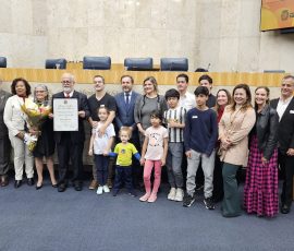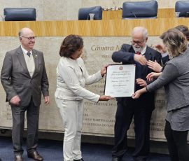 A Câmara Municipal de São Paulo concedeu na noite desta segunda-feira, dia 20 de outubro, o Título de Cidadão Paulistano ao professor e presidente da Udemo, Francisco Antônio Poli. A iniciativa da homenagem foi do vereador Celso Giannazi, que também presidiu a Sessão Solene. A Apampesp esteve representada na cerimônia pela presidente, professora Walneide Romano.