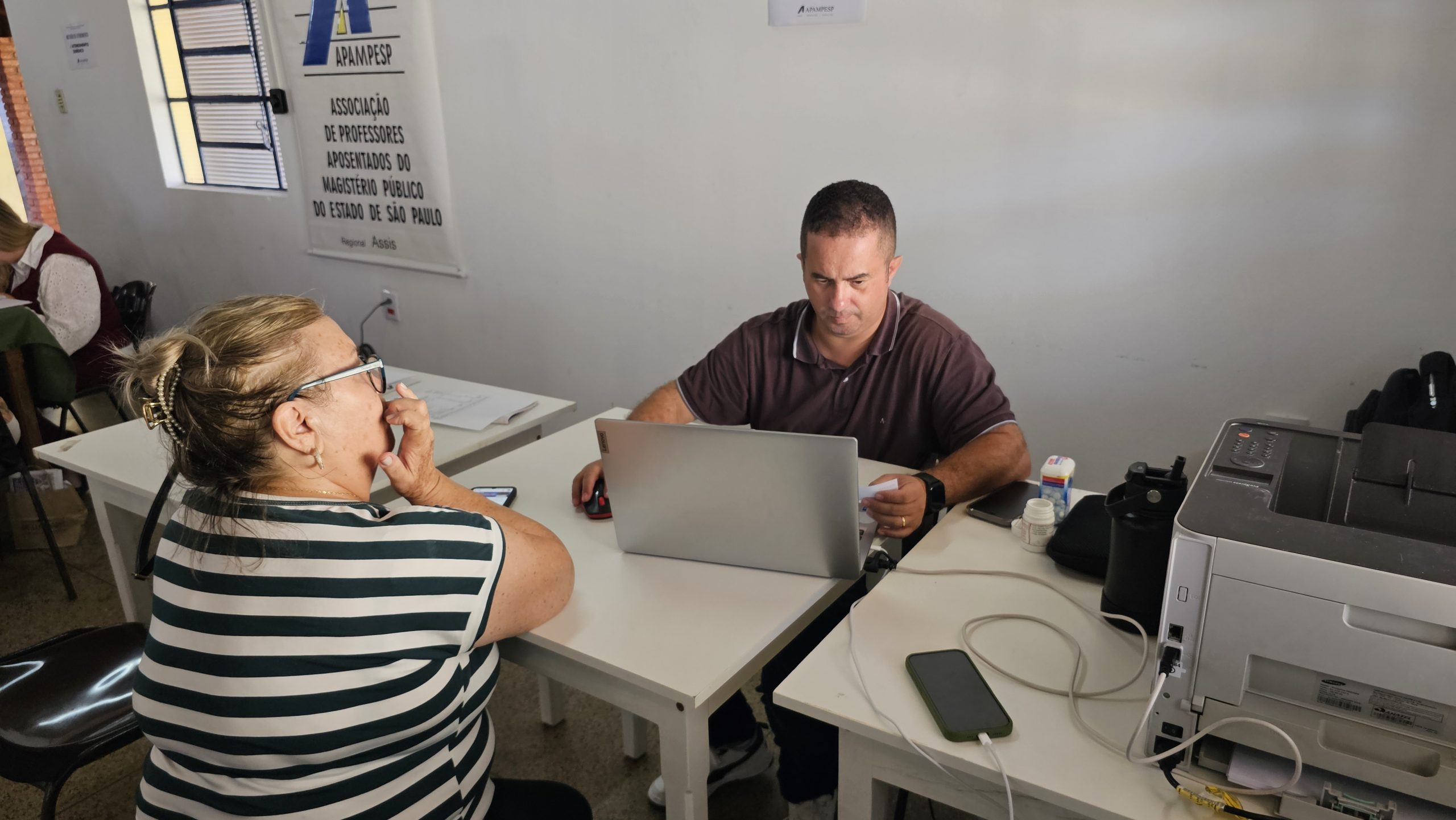 Ao longo do dia, professores e servidores públicos aposentados contaram com orientações gerais, verificação de holerites, apoio no recadastramento e emissão da carteirinha digital do Iamspe. Também garantimos suporte no uso das plataformas GOV.BR e SOU.SP.GOV.BR, promovendo mais autonomia no acesso aos serviços. E, como sempre, o Departamento Jurídico esteve presente, assegurando orientação qualificada e segurança em cada atendimento.
